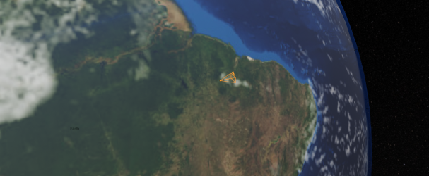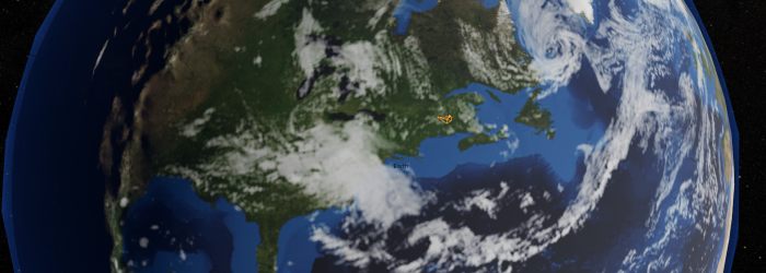 Within our Earth model is an interactive orange camera element which is a viewing camera co-moving with Earth. This feature permits users to virtually position a camera anywhere across the globe’s terrain, achieving their unique perspective to observe the moon’s phases and positions.