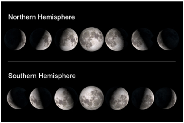 Hemispheric dependency of lunar phase (figure from OpenEdu.com)